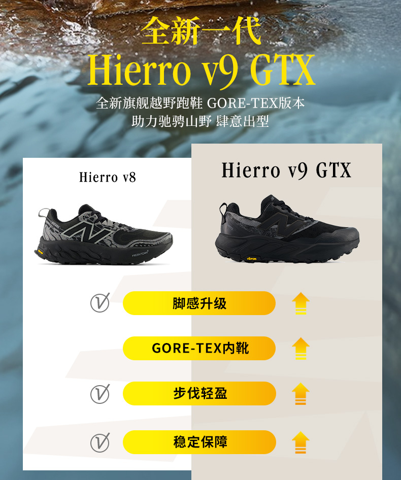 Fresh Foam X Hierro v9 Gore-Tex 男款舒适缓冲户外运动越野跑鞋
